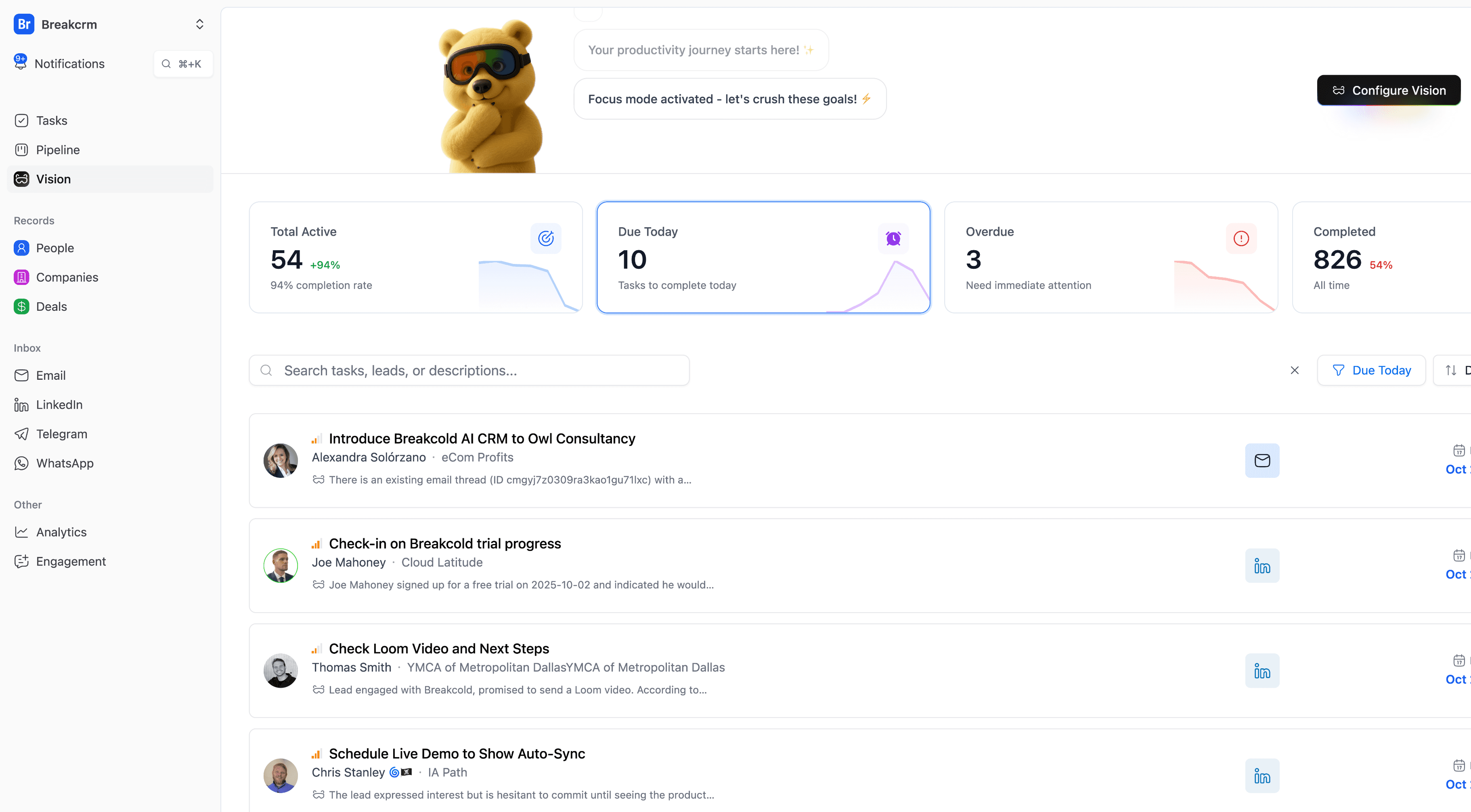 Breakcold is both an AI CRM and a Sales CRM, but with a twist.